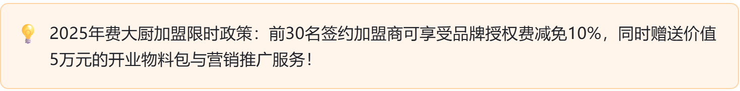 费大厨为2025年新加盟商提供全方位扶持体系,助力降低创业风险: