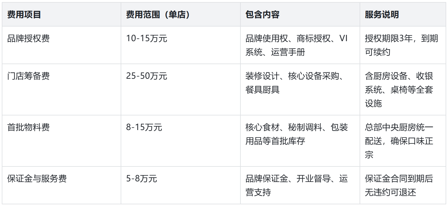 备注:以上费用不包含门店租金、人员工资及水电费(因城市地段、人工成本差异而异),总部会提供当地市场调研数据及成本控制建议。