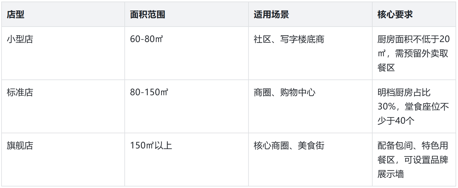 投资者需根据预算与目标客群选择店型:① 资金有限(14-20万元)优先考虑60-80㎡社区店,租金成本较低;② 瞄准商圈客流则选择80-120㎡标准店,通过堂食+外卖提升营收;③ 避免盲目追求大店面积,100㎡门店的人效、坪效通常高于150㎡以上的大店。