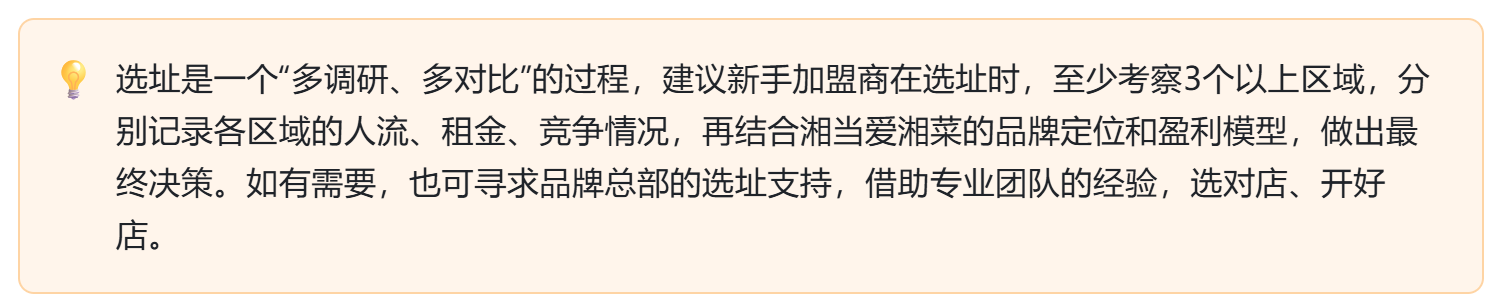 选址不是“凭感觉”,而是要围绕湘当爱湘菜的品牌定位、客群特征和产品属性,遵循科学的原则进行判断。以下3大核心原则,是加盟商必须牢记的“选址铁律”。