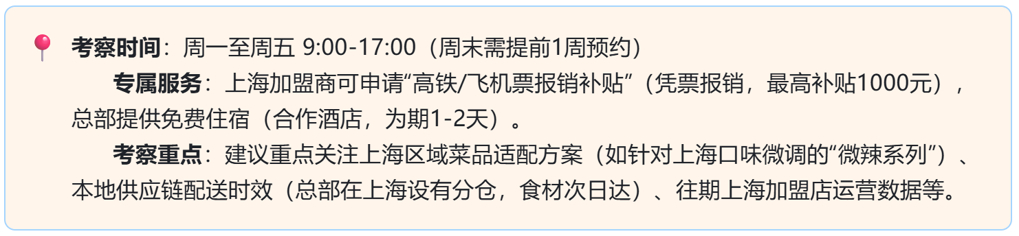 为让上海加盟商高效完成考察,总部特别优化了接待流程,具体安排如下: