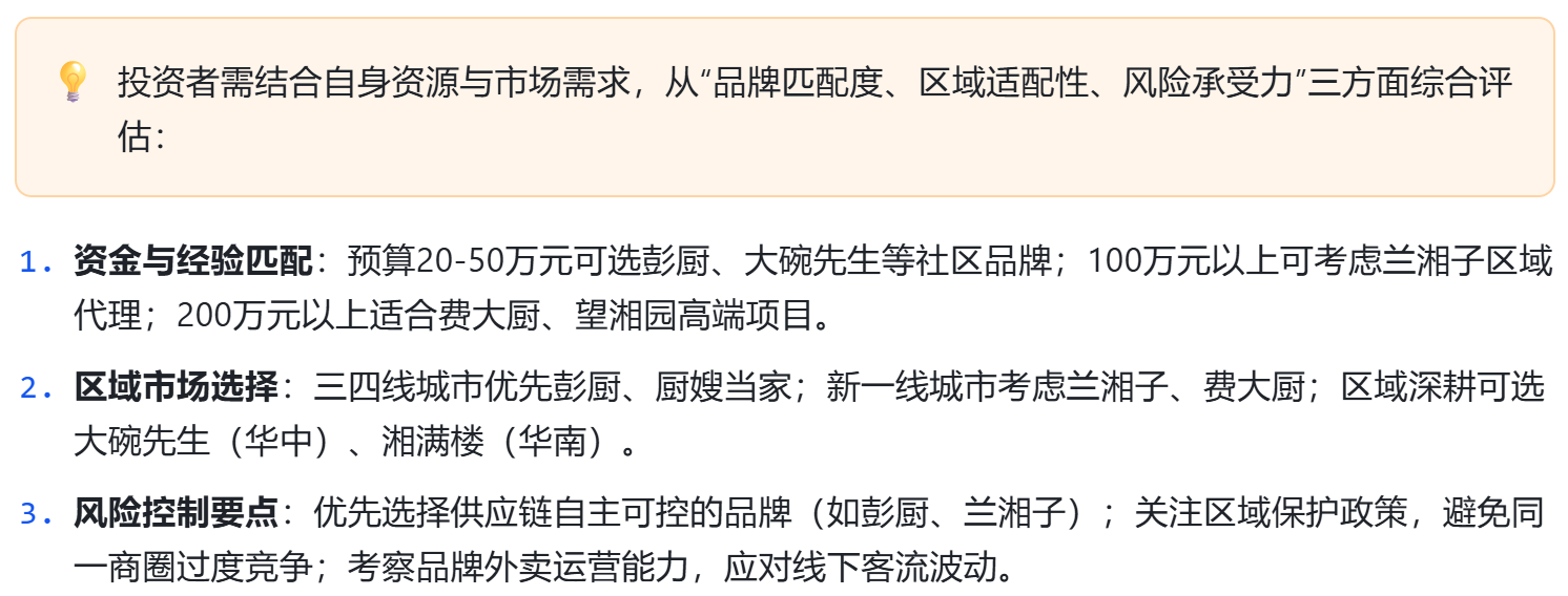 从2025年十大品牌PK来看,彭厨的社区下沉与兰湘子的跨省扩张代表了湘菜加盟的两种主流路径,而费大厨的高端化尝试则打开了品类价值天花板。但门店数量并非唯一的决策依据,投资者更应关注品牌的“可持续扩张能力”——包括供应链稳定性、数字化运营水平及区域市场适配度。在湘菜市场持续升温的背景下,选择“规模与品质并重”的品牌,才能在红海中实现长期盈利。